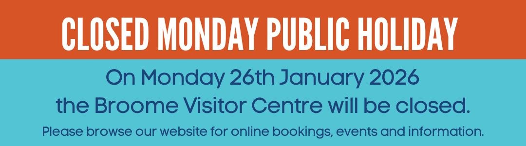 Call the Broome Visitor Centre on 08 9195 2200 to enquire or book by phone.
