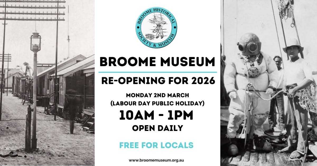 We’re back. The Broome Historical Society & Museum reopens Monday 2nd March for the 2026 season.