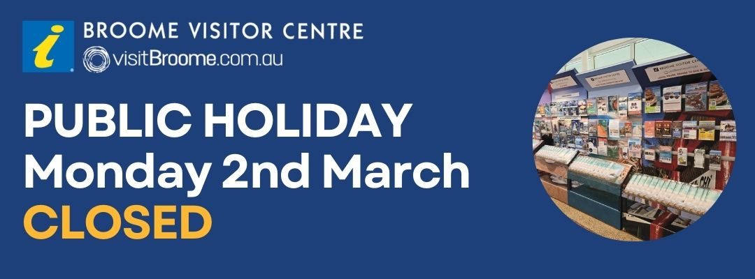 Broome holiday? Broome tour? Broome trip? Book locally with the Broome Visitor Centre.