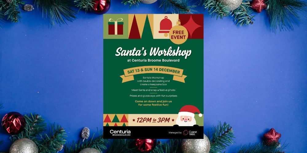 Santa’s Workshop Activities: Bauble decorating, Create your own keepsake box, Meet Santa & snap a festive photo! Prizes, giveaways & fun surprises await!Bring the family and join us for a jolly good time filled with creativity, laughter, and holiday cheer. Don’t miss out - mark your calendars now! See you at Broome Boulevard!