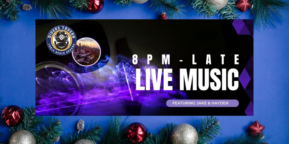 Silly season is in full swing, and Broome legends Jake & Hayden are bringing the festive feels to Divers Bar on Friday 19th December! Beat the wet season heat in our icy air-con, and come down early for a bite to eat before these two legends hit the stage from 8pm–late. $12 cocktail specials all night long.