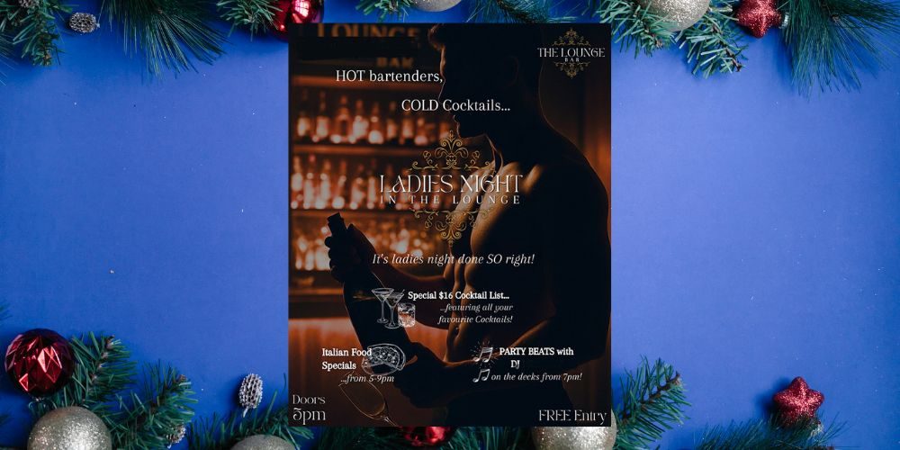 Friday 12th December from 5pm at The Lounge Bar Broome. Ladies Night! Free entry. 18+