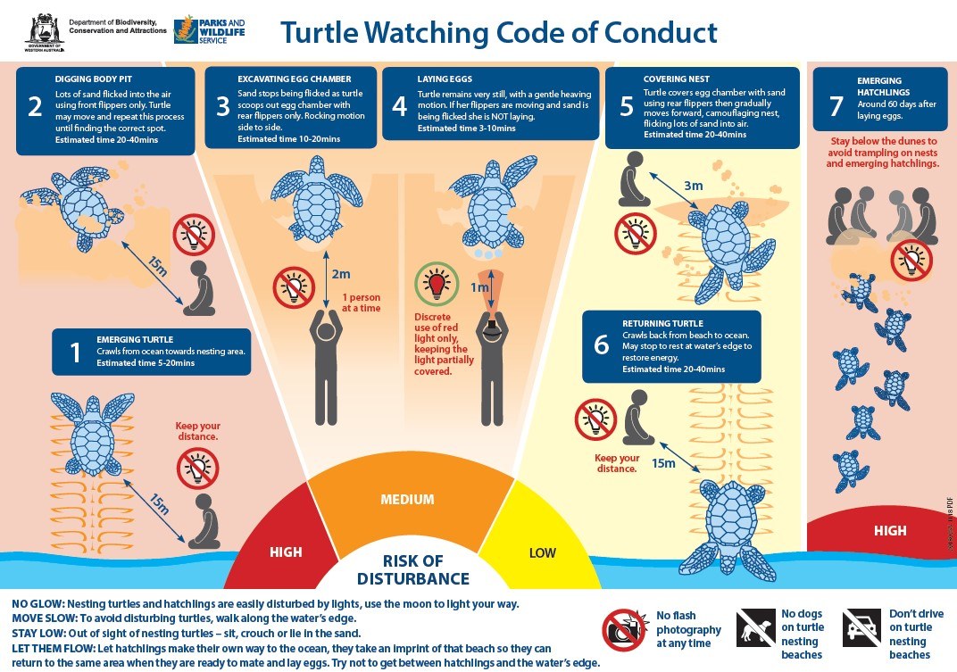 • Following the ‘Turtle Watching Code of Conduct’ if you see a turtle