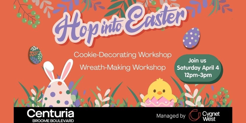 Celebrate Easter with an afternoon of creativity and hands‑on fun! Bring the family along for festive workshops designed to spark imagination and bring out everyone’s inner creator. Saturday 12:00pm – 3:00pm. Cookie Decorating Workshop: Design and decorate your own Easter‑themed cookies! Wreath Making Workshop: Create a beautiful Easter wreath to take home and display.Hop into Broome Boulevard for an Easter celebration filled with creativity, colour, and unforgettable family fun! Details here