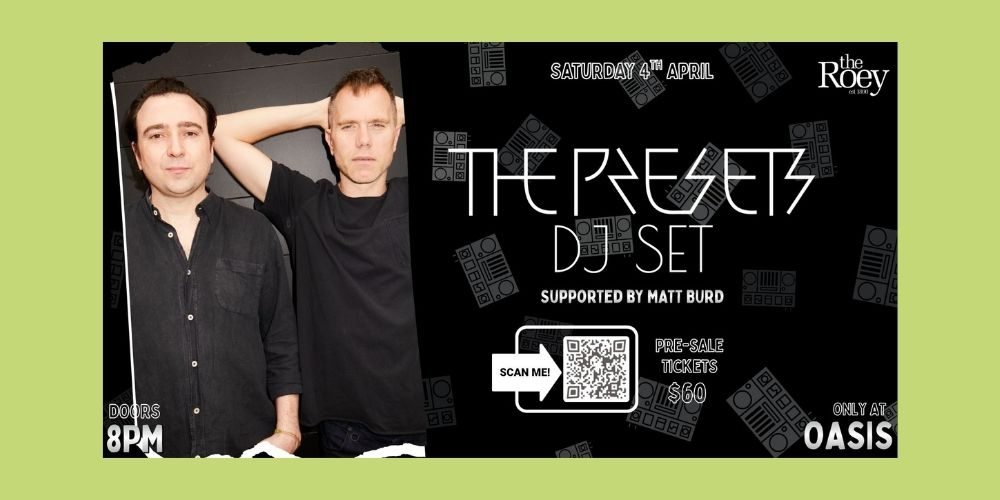 The Presents are coming to Broome for one night only in OASIS, supported by one of your fave guest DJs MATT BURD! It's going to be an absolutely EPIC night on our star lit dance floor! Doors 8pm. 18+ event. Event details and ticket link