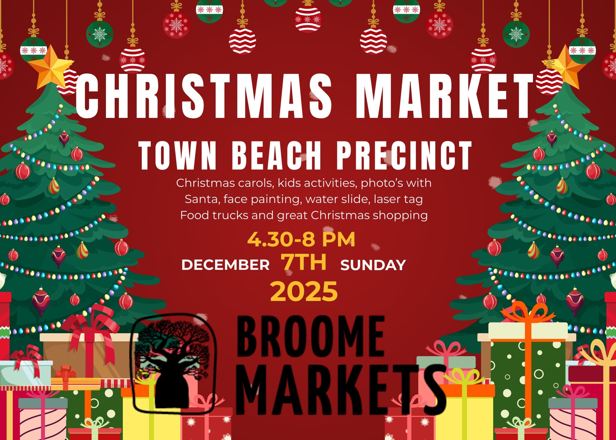 Save the date for the 2025 Christmas Market in Broome on Sunday 7th December from 4pm - 8pm at the Town Beach Precinct.