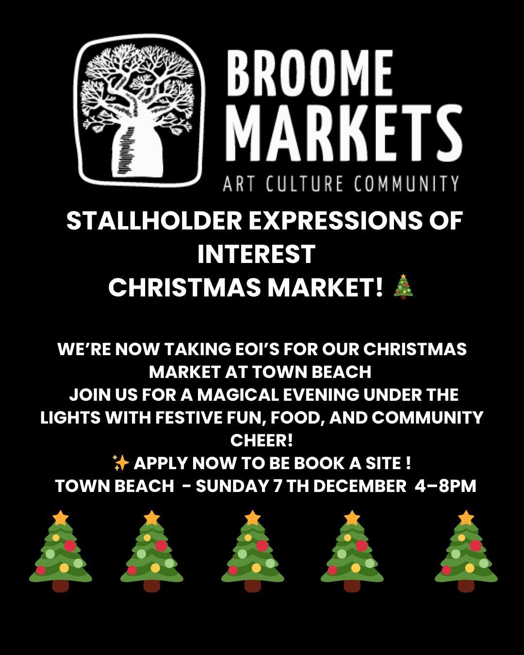If you would like to join our Christmas market please head to the Broome Markets website and complete the application form.