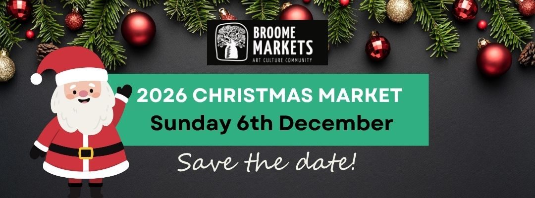 Save the date for the 2026 Christmas Market in Broome on Sunday 6th December. Broome Town Beach Precinct from 4pm - 8pm. More details to come!