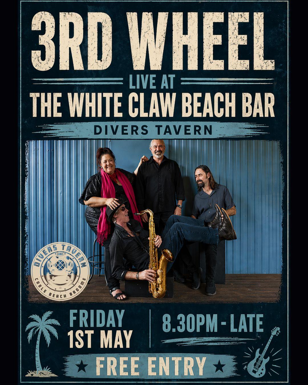 Friday Night is Live Music with 3rd Wheel in The White Claw Beach Bar at Divers Tavern | 8.30pm - LATE. Free entry.