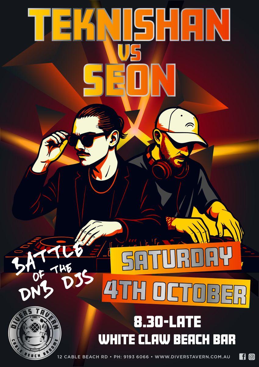 This Saturday, 4th October, two local heavyweights go head-to-head in the ultimate Drum & Bass showdown. Teknishan and SEON will be bringing the energy, the bass, and the vibes as they battle it out on the decks from 8.30pm ‘til late. Expect nothing but heavy drops, big remixes, and dancefloor chaos as the crowd decides who takes the crown. It’s all happening in the White Claw Beach Bar at Divers Tavern – round up your crew and get ready for a massive night of beats by the beach.