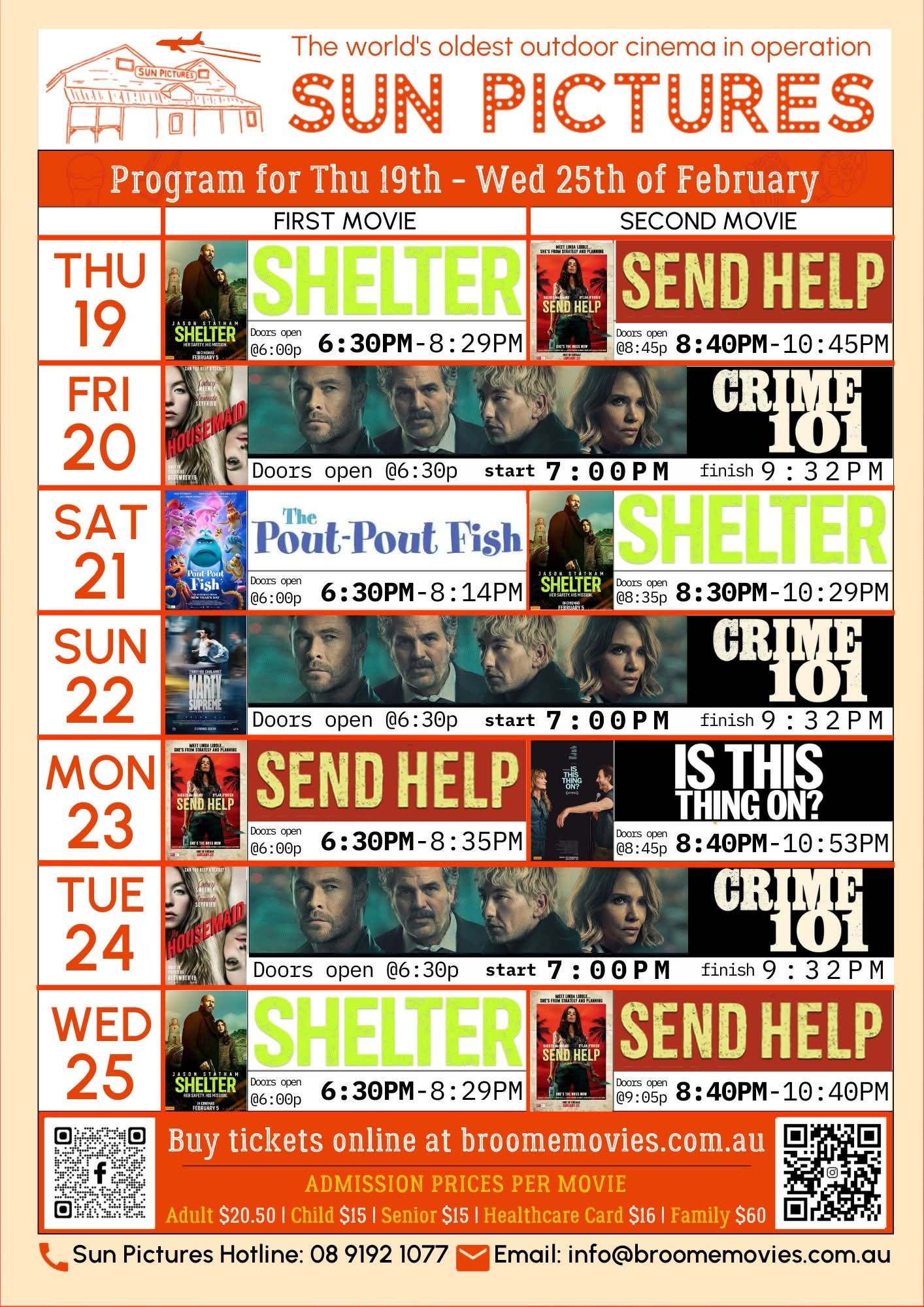 Book tickets online at www.broomemovies.com.au or arrive early to book at the cinema.