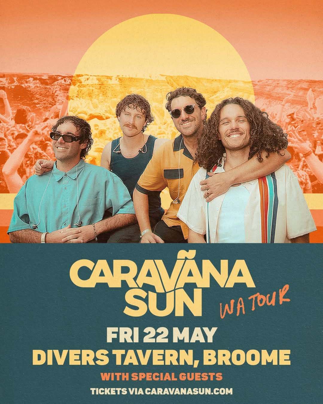 BROOME - Caravãna Sun return to beautiful Broome for ONE NIGHT only for 2026 at Divers Tavern on Friday 22nd May. Tickets will sell out early! Special guest Stellar Moon. TICKETS >