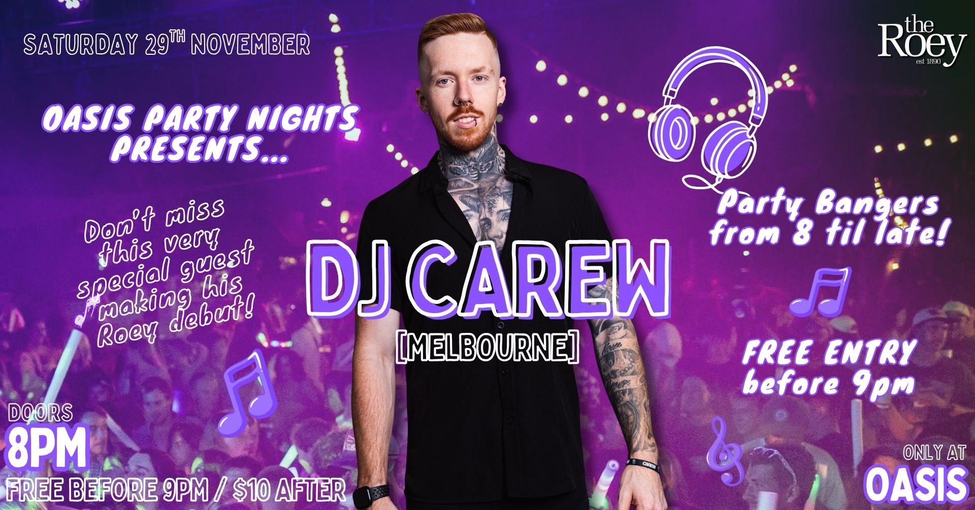 Oasis Party Nights presents... DJ CAREW. Heading our way all the way from Melbourne, join us as he makes his debut behind our decks with a BIG Saturday night featuring all your fave Party Bangers & D-Floor Anthems! Beats from 8 til really late. Free Entry until 9pm. Drink specials alllllll night. Get ready for a HUGE night on our star-lit dance floor!Doors from 8pm. Free b4 9pm / $10 after 9pm
