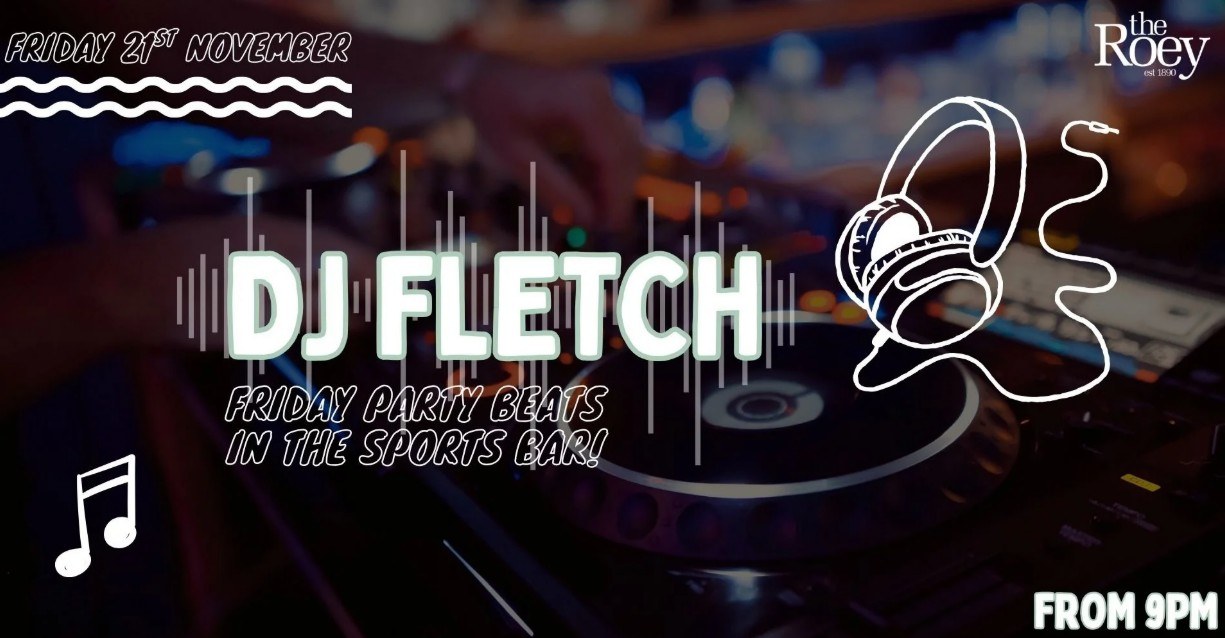 DJ Fletch at Roey Sports Bar on Friday 21st November from 9pm.
