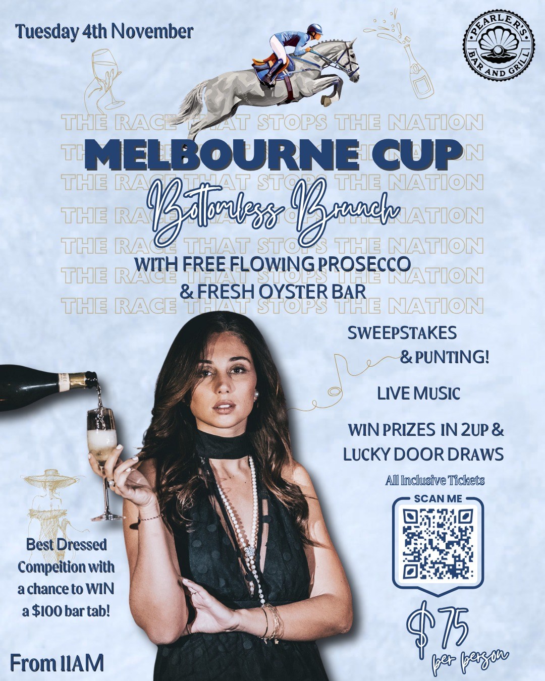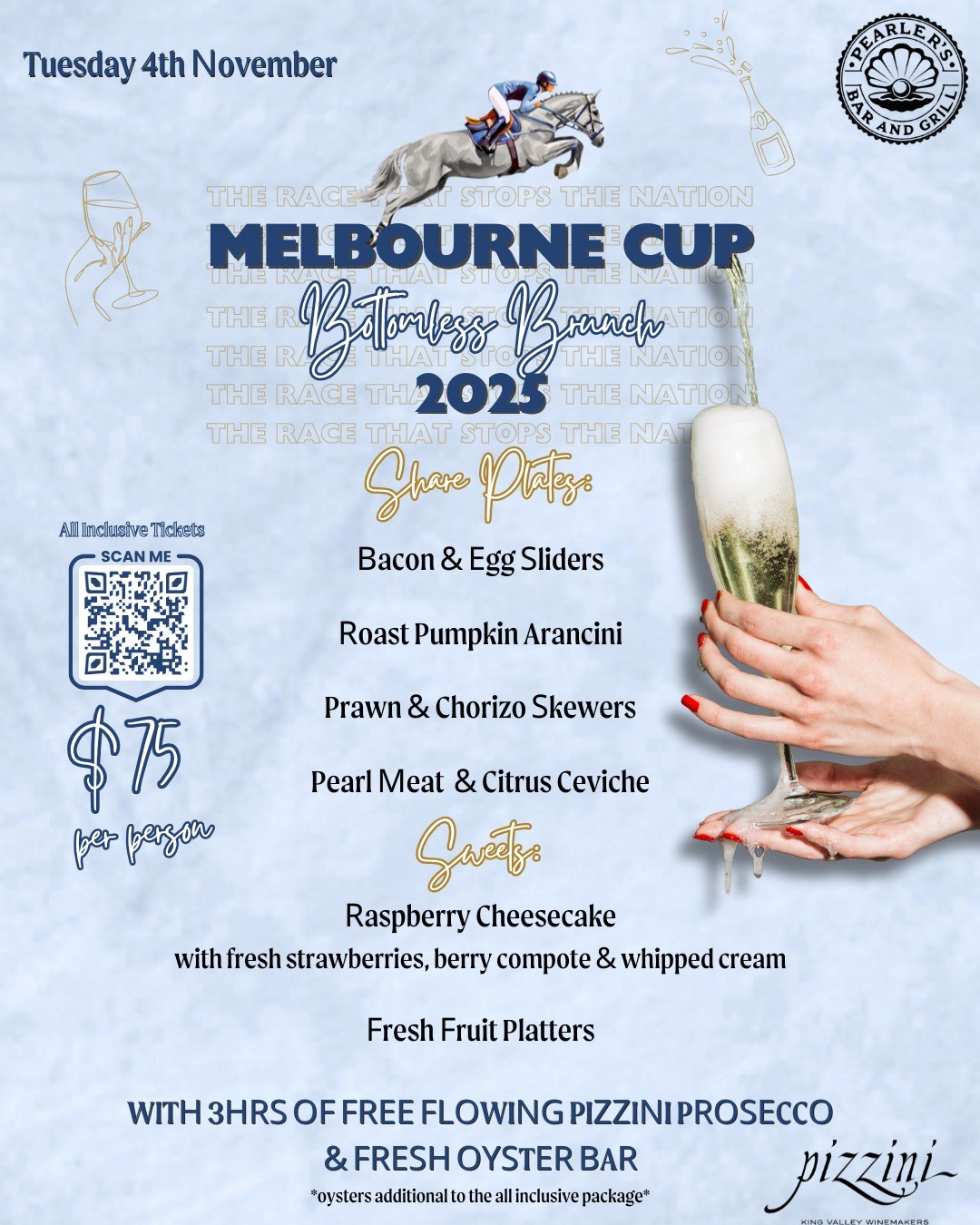 Get ready for an unforgettable Melbourne Cup day at Pearlers Bar & GrillJoin us for a day of bottomless bubbles, live music, fantastic food, fun, fashion & giveaways all day, as we celebrate Australia's most iconic race in style.Whether you're here for the thrilling race, the on point fashion, or just a great day out with friends, Pearlers Bar & Grill is the place to be.Your all inclusive ticket includes: