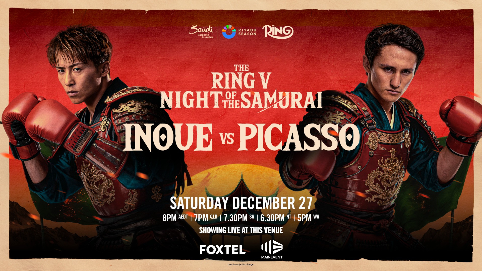 ATTN BOXING FANS While actual Boxing Day might be the 26th, YOUR Boxing Day is happening on Sat 27th December, with your fave combat action LIVE & LOUD on the big screens in the Sports Bar! NAOYA INOUE vs ALAN PICASSO. Undisputed Super Bantamweight Championship. Boxing starts 5pm / FREE ENTRY