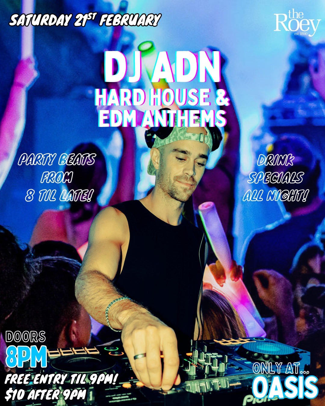 It's the Saturday night you've been waiting for all year...Your FAVE place to party in town... OASIS is REOPENING this Saturday 21st February. Party beats with DJ ADN from 8 til late. Drink specials allllll night. FREE ENTRY before 9pm.Come celebrate Oasis party nights being back for 2026 with a HUGE night on our star-lit dancefloor! Doors 8pm.