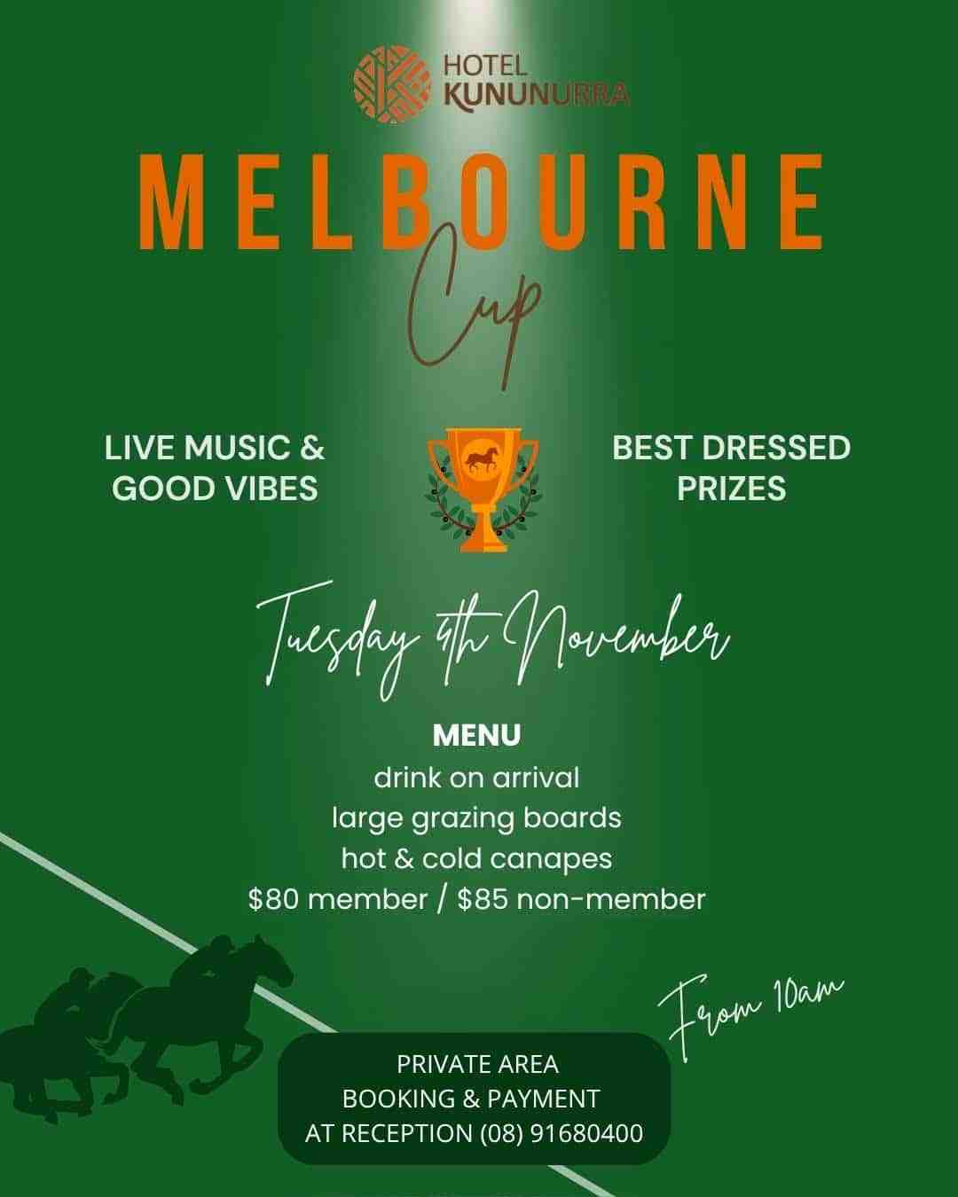 This Melbourne Cup, Hotel Kununurra is the place to be! Drop by and enjoy the race with the rest of the Kununurra mob, or book a table for yourself or your colleagues. Why not make it an early Christmas function? Email: [email protected] for corporate bookings, or just drop by at the reception to confirm your reservation. Note: This is a regional event in Kununurra (not Broome).