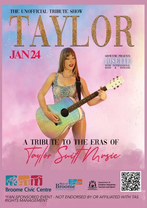 It was the biggest concert tour in history, and now you can re-live the hype when THE UNOFFICIAL TRIBUTE SHOW - TAYLOR: A Tribute to the Eras of Taylor Swift Music on Saturday 24 Jan 2026 at the Broome Civic Centre. Join us as we salute ‘Tay Tay’ and the indelible impact she’s had on Pop music with this joyous, effervescent concert experience, complete with sparkly costumes, cosmic stage production and over 20 exquisite renditions of Taylor’s biggest hits from every era of her career, including Shake It Off, Anti-Hero, Cruel Summer, You Belong With Me, Love Story, I Knew You Were Trouble, Blank Space, We Are Never Ever Getting Back Together, Bad Blood, Our Song, Lover and more.
