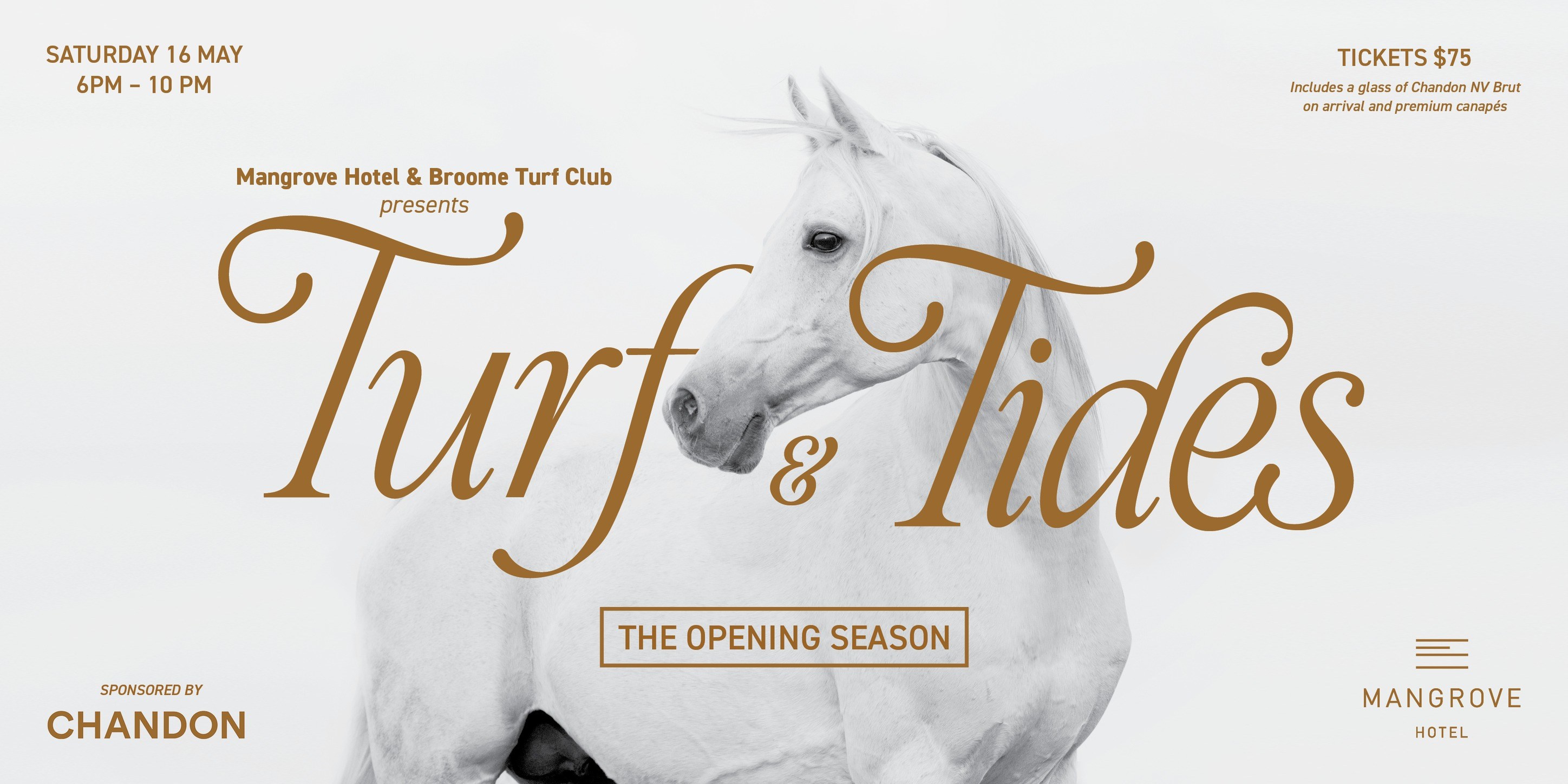 Turf & Tides - The Opening Season has officially landed at The Mangrove! Broome Racing season kicks off in style at The Mangrove Hotel, and we're pulling out all the stops for the ultimate launch event.Join Broome Turf Club and Chandon for a night of bubbles, bites, and big Broome energy - because the only way to start the season is with a glass in hand and the best people around you.Tickets Include: