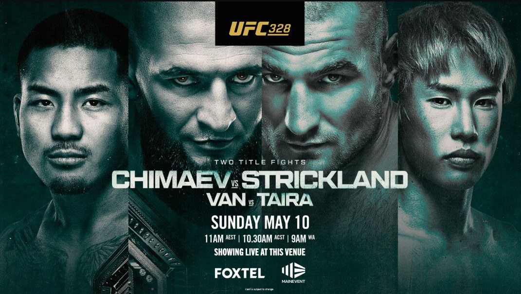 UFC 328 Chimaev vs Strickland at the Roey Sports Bar from 9am.