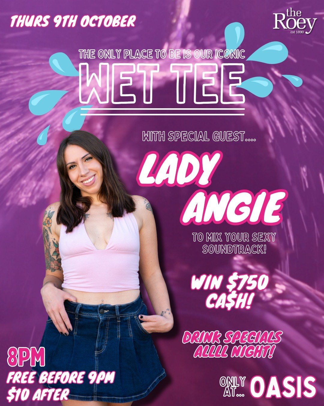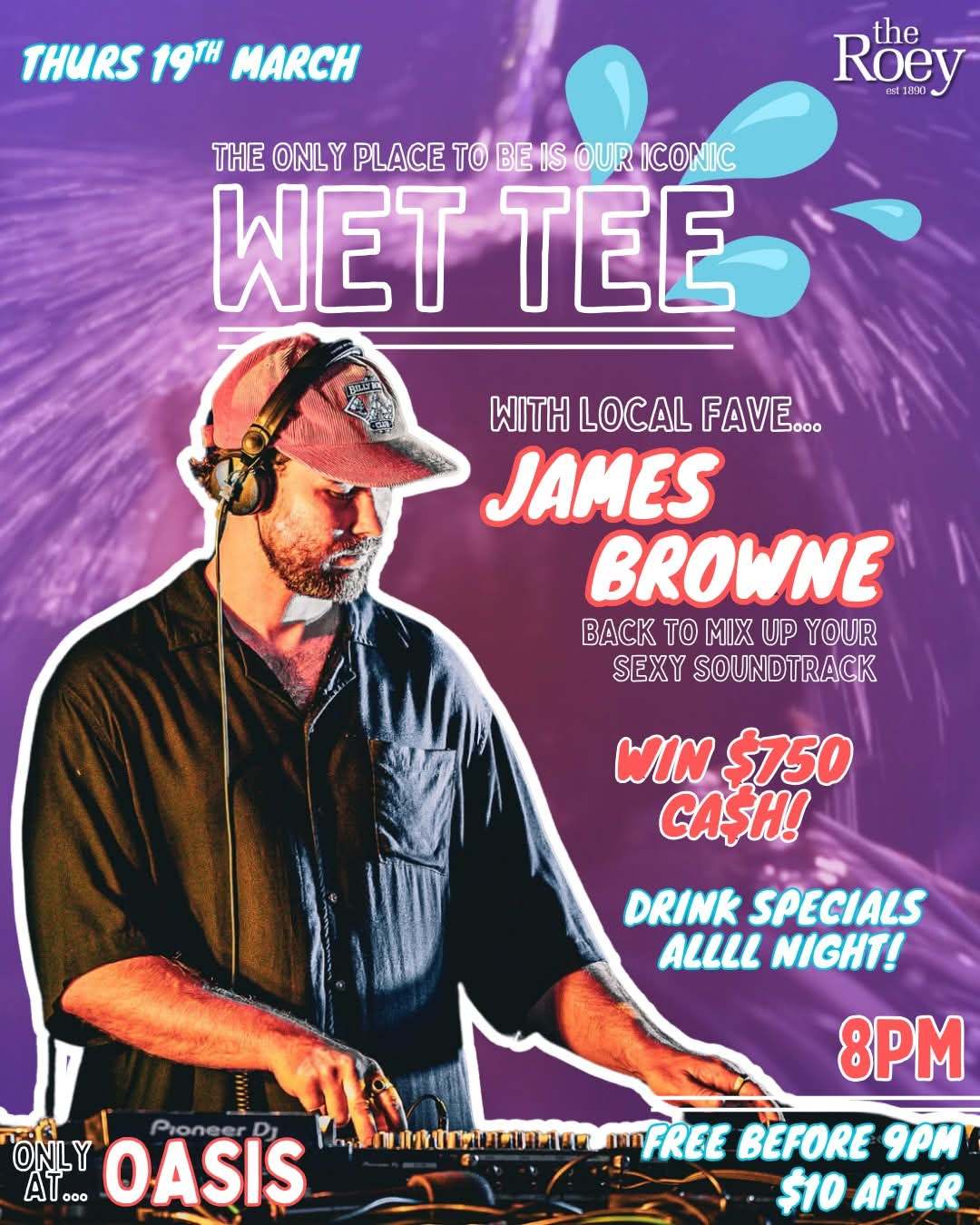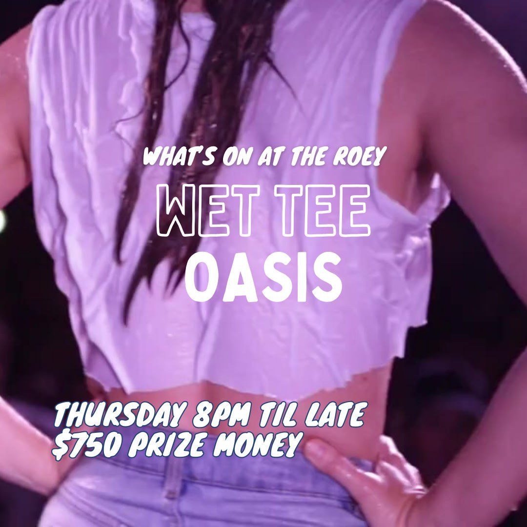Brace yourself for the biggest night out in Broome! No Thursday night in Broome would be complete without a visit to the Wet-T! We bring in the biggest crowds that Broome has to offer, so come along and take advantage of our drinks specials or get involved in the comp for your chance at the $750 cash prize! Head over to Oasis Bar at The Roey! Doors from 8pm. Open late. FREE ENTRY before 9pm / $10 after 9pm for everyone.