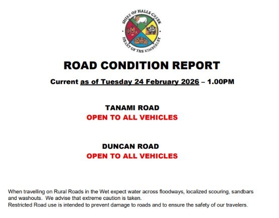 > Shire of Derby/West Kimberley Road Condition Report - 23 February 2026 - 1600