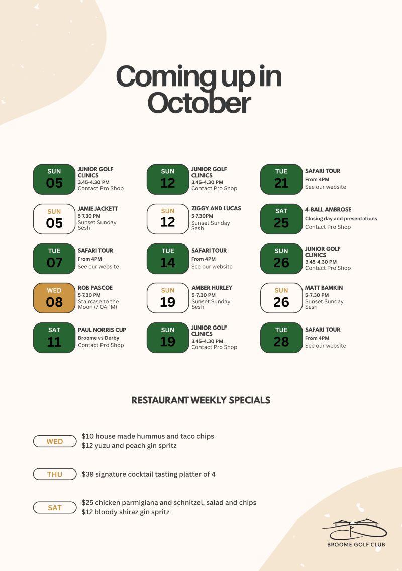 The Club dates back to the 1960’s, operating from a small custom orb structure atop a course of sand fairways and greens, to now hosting a high quality grass golf course with first class food, beverage and member facilities providing 360 degree views from Roebuck Bay to the Indian Ocean.
